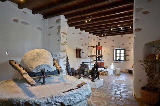 We depart from Naxos town to get to the green valley of Gyroula Snagri. There we will visit the marble - temple, ercted for the worship of goddess Demeter, whcih is one of the most important ancient monuments of Naxos. Entering the heart of the hinterlan, we arrive in Halki. A place of great architecture, with remarkable poitins, as the Byzantine church of Panagia Protothroni and the citron distillery "Vallindras" At teh foot of moutnain Fanari, stands our next stop, Apiranthos. A village of extraordinary tradtional beauty, with venerian castles and marbled alleys. Behidn teh village and passing through Korons adn the famous Smidorouss of Naxos, we will reach Apollo. There we will see the famous Kours and will stop for bathing and eating. Our last staion is Eggares, with teh traditioanl olive press.