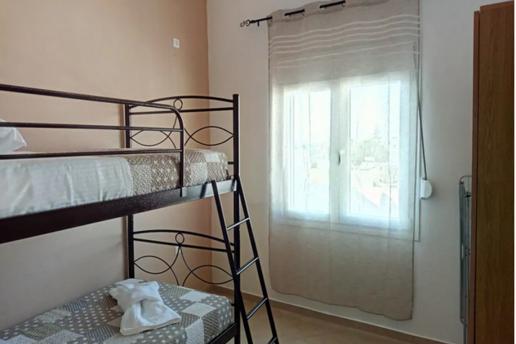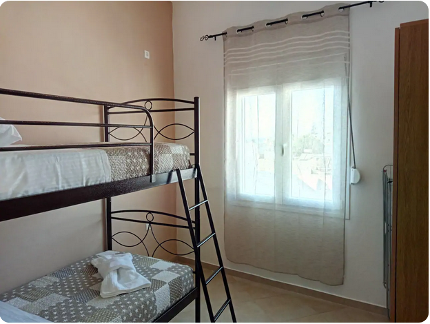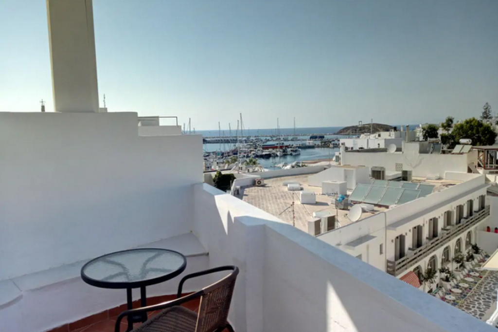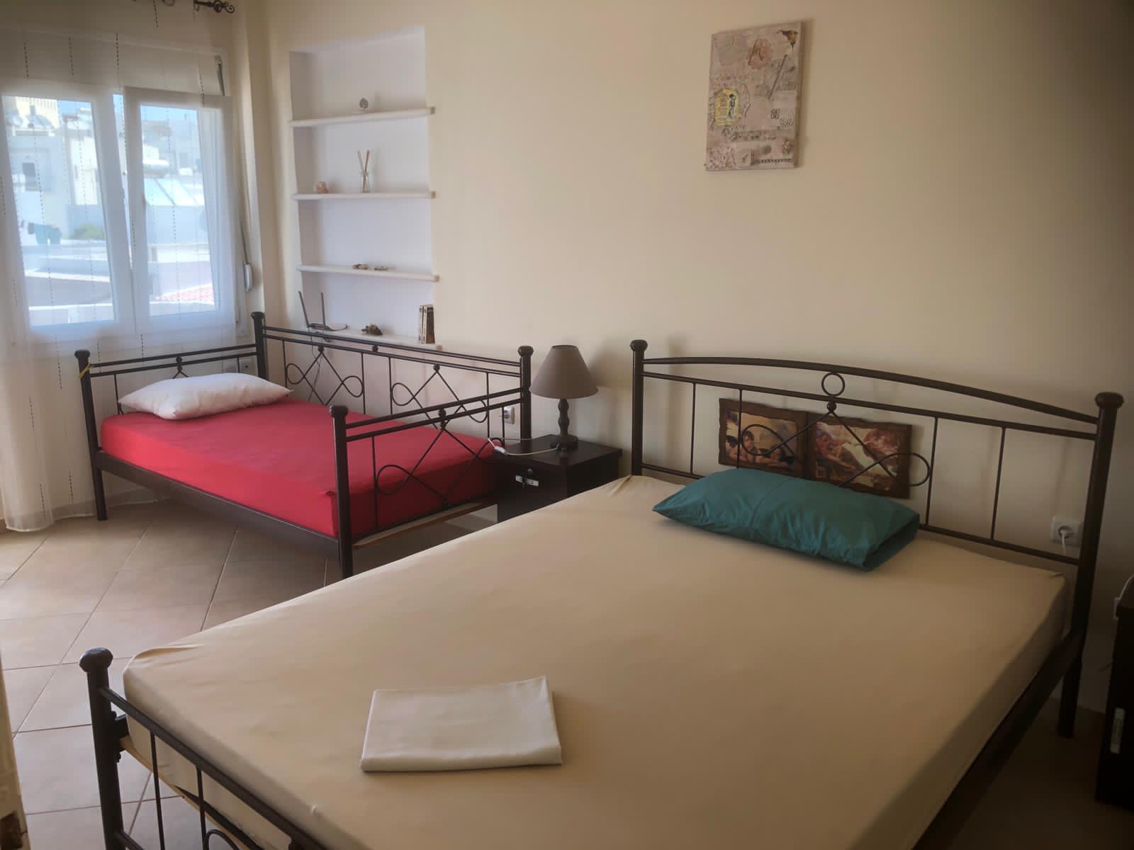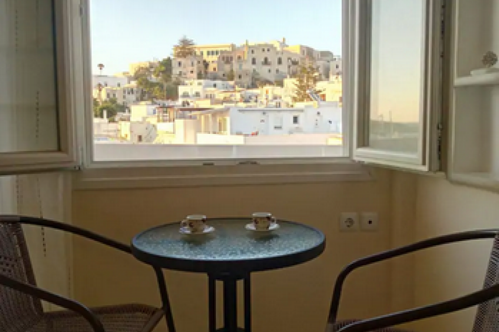 Consist in 1 double bedroom, one bedroom with Bunk bed, Open floor Kitchen- Living room, Bathroom and veranda with amazing view on Naxos, port, Marina and the Apollo's Temple.