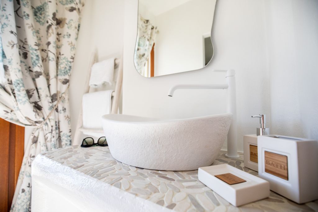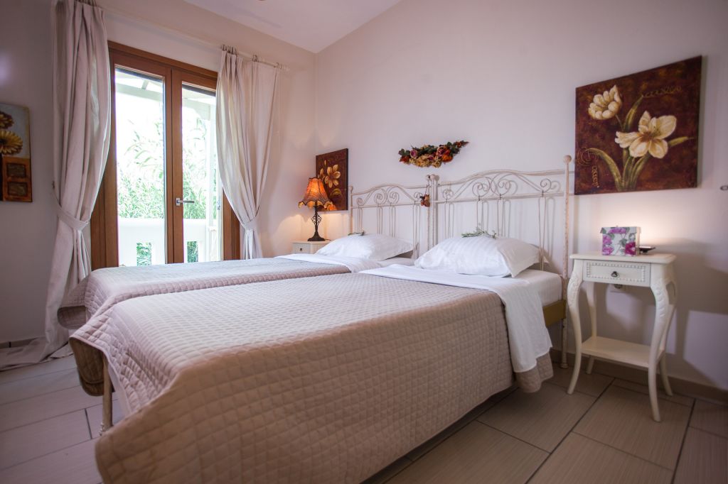 Elegant villa is designed in a romantic style with wrought iron beds, white and brown furniture in earthy colors in order to create a warm and relaxing atmosphere for our guests.