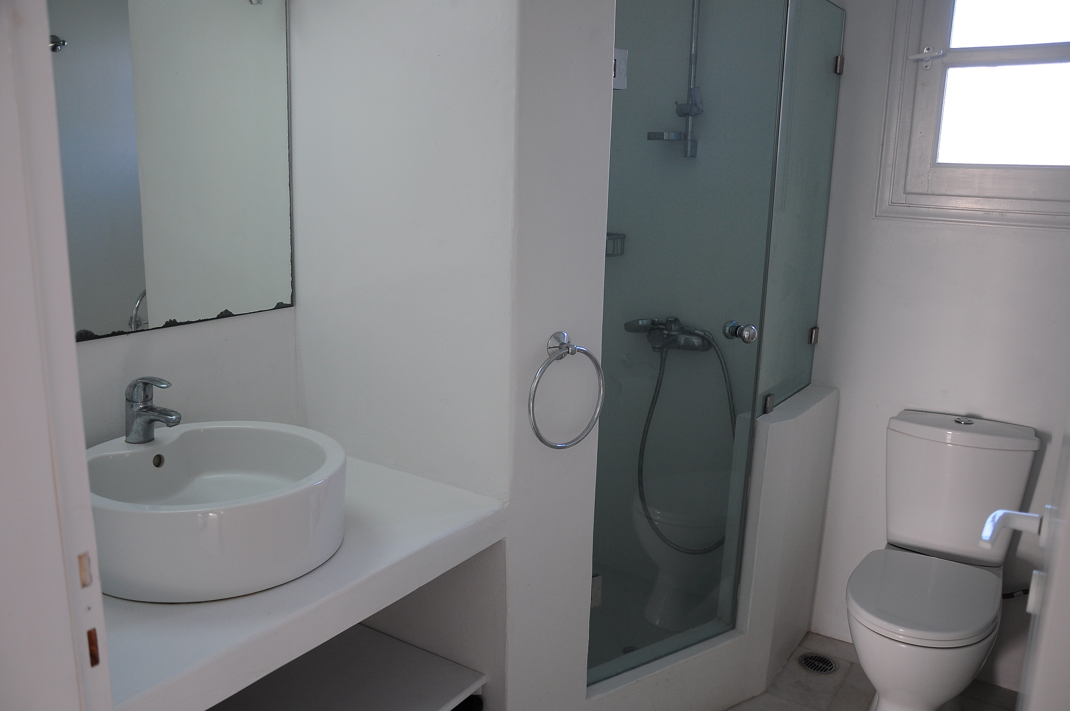 The apartment is 70 Sq Meter and consist in Living Area with stonewashed built in sofa, fully equipped kitchen, bathroom with shower, one bedroom with queen size bed and a bedroom with 2 single beds, ideal for families with kids.