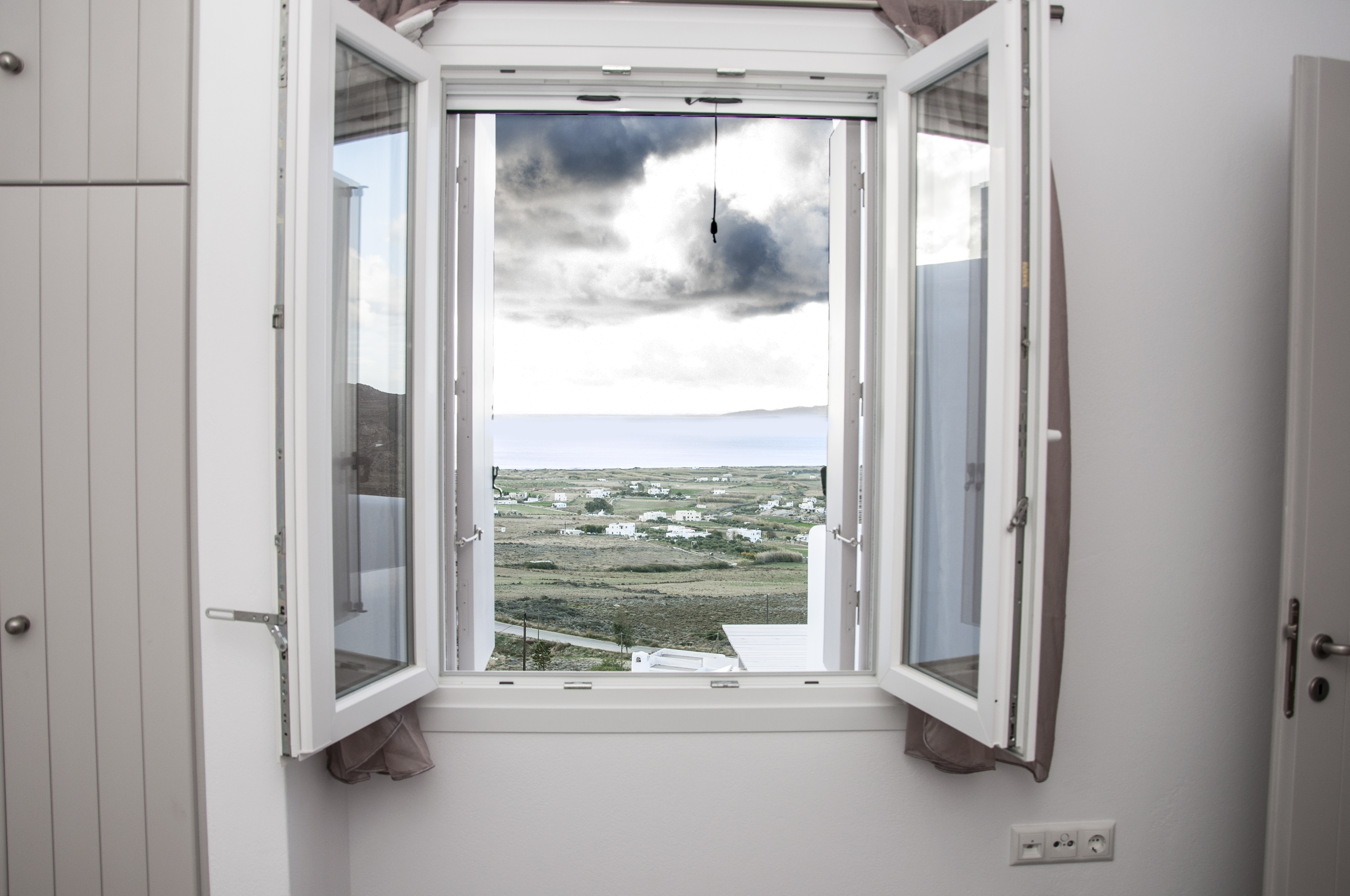 For those seeking a cycladic, tranquil getaway Heavenly Retreat is the answer. This 65-square-meter, two-storey apartment is located uphill, but still just 3 kilometers away from the nearest beach, indulging the visitor with its splendid views. The shaded veranda with its cozy furniture opens a window to the Aegean sea.