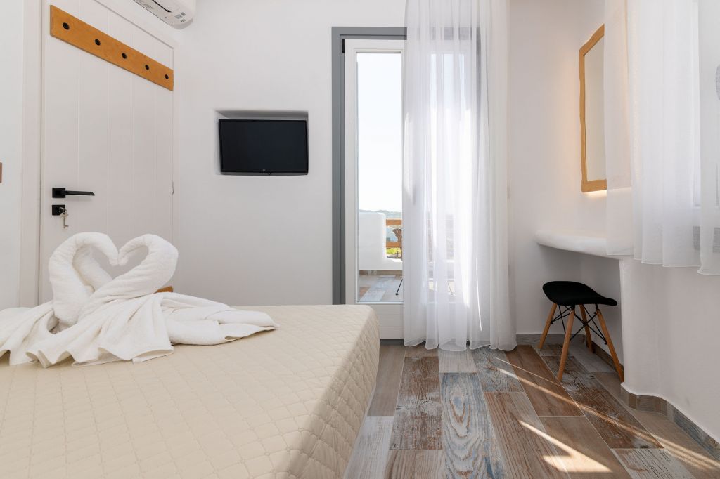 Our Black Villa consists of two double bedded rooms one of those contains an en-suite bathroom. The kitchen is fully equipped with a coffee machine , toaster , dishwasher, fridge and microwave. The living room consists of a sofa which can accommodate for 2 people. There is also a swimming pool and barbecue area where you can enjoy a warm cooked meal whilst indulging in your daily swim. Surrounding the villa there is a garden where you have the luxury of indulging in the pure essence of breathtaking view of the Naxian crystal clear beaches and Naxos castle.