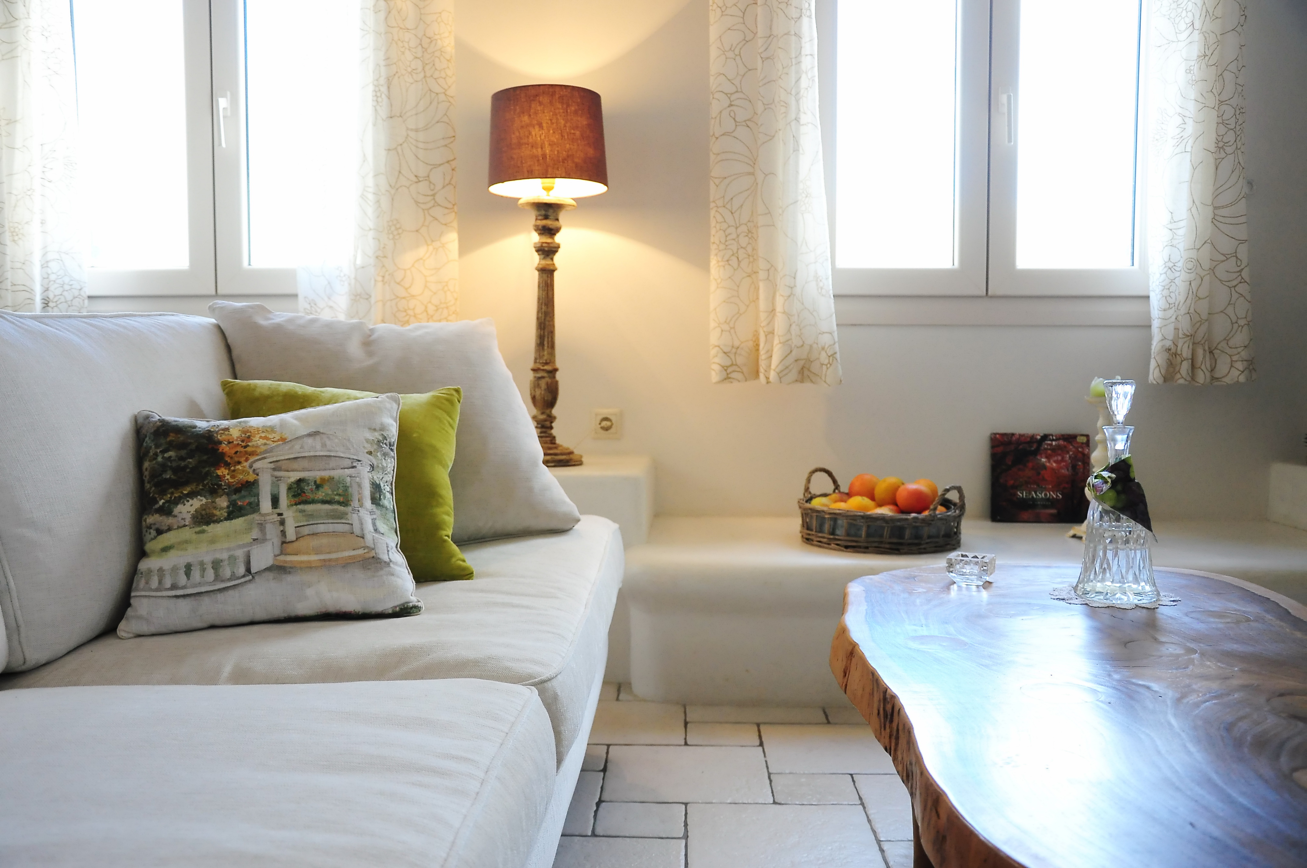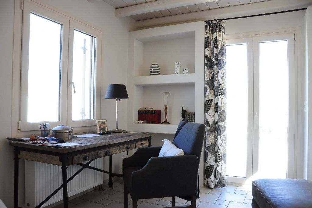 Three delightful bedrooms with unique handmade furnishing and decor inspired by the cycladic architecture.